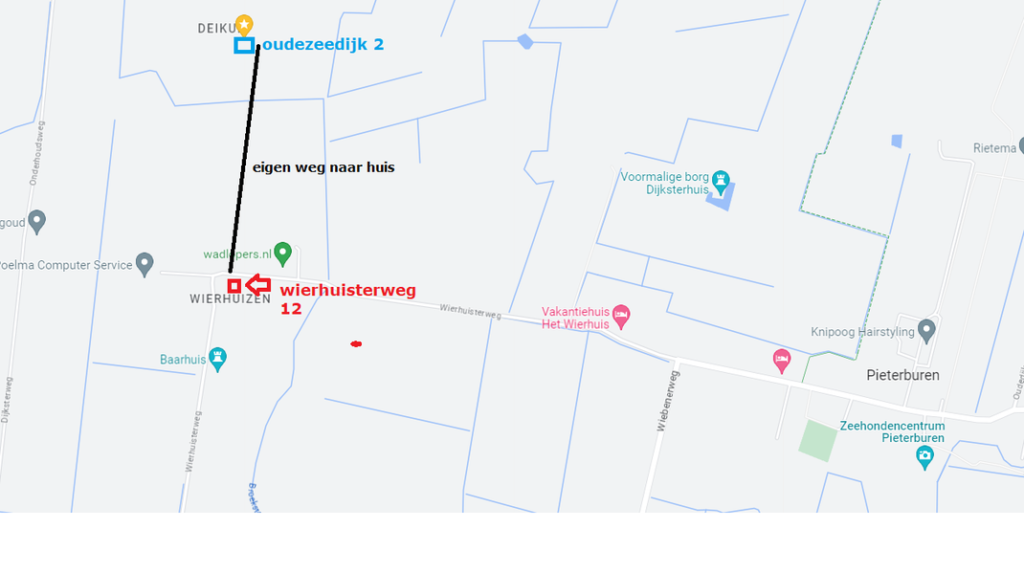 Landhaven Deikum is te bereiken via een 700 meter lange toegangsweg. Het adres is is Oudezeedijk 2, 9968 TB, Pieterburen. De ingang van de toegangsweg naar dit adres ligt enkele kilometers buiten Pieterburen en begint tegenover de Wierhuisterweg 12, Pieterburen. Reis je met behulp van je Googlemaps of Tomtom, gebruik dan uitsluitend het adres Wierhuisterweg 12 Pieterburen om de toegangsweg te vinden.